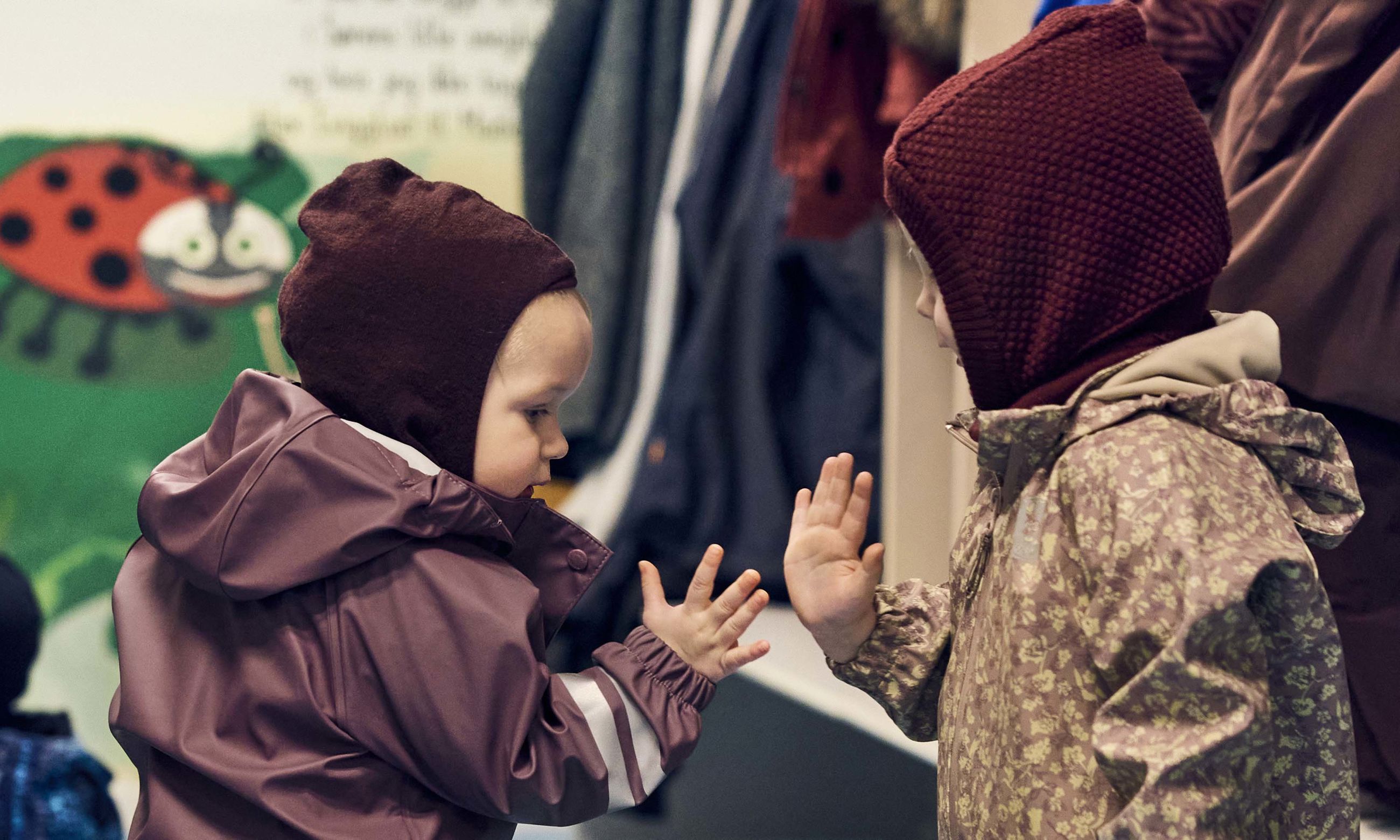 Børnehavebørn giver hinanden high five